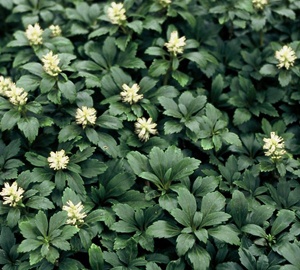 De bladeren van de pachysandra zijn omgekeerd eirond. In de maanden maart en april bloeit de pachysandra. Het zijn prachtige rechtopstaande kaars achtige.