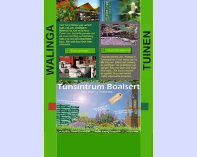 Het tuincentrum van Johannes en Gerda Walinga op de Marne in Bolsward met al het materiaal dat je nodig hebt om een tuin te bouwen. Ons bedrijf heeft een verkoopoppervlakte van 10. Ga dan langs bij dit tuincentrum of neem contact met ze op. Niet ieder tuincentrum biedt namelijk een even compleet assortiment aan in diverse tuinelementen.